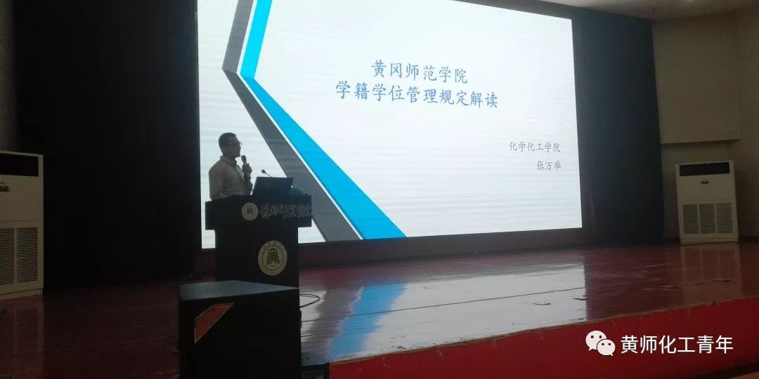 随后,化学化工学院副院长张万举老师为我们解读了黄冈师范学院学籍学位管理规定并分析了当年的考研形势与就业趋势,考研的难度正在逐年增大,同学们更是应该学会多关注国家及学校对考研方面的政策、规定。张院长的解读与讲话让同学们受益匪浅。