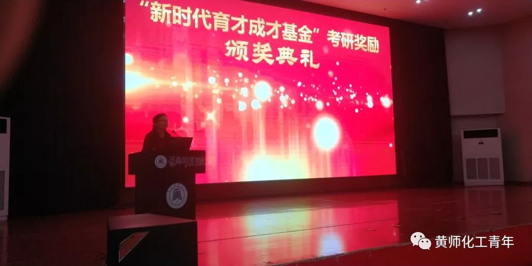 在同学们热烈的掌声中,化学化工学院院长田正芳揭晓了获得“新时代育才成才基金”考研奖励的同学名单,“新时代育才成才基金”系化学化工学院校友捐赠,专为鼓励考研学生而设立,2019届凡考研超过国家分数线的同学均获得了888元考研奖励!特邀嘉宾赵胜芳教授致祝贺词。