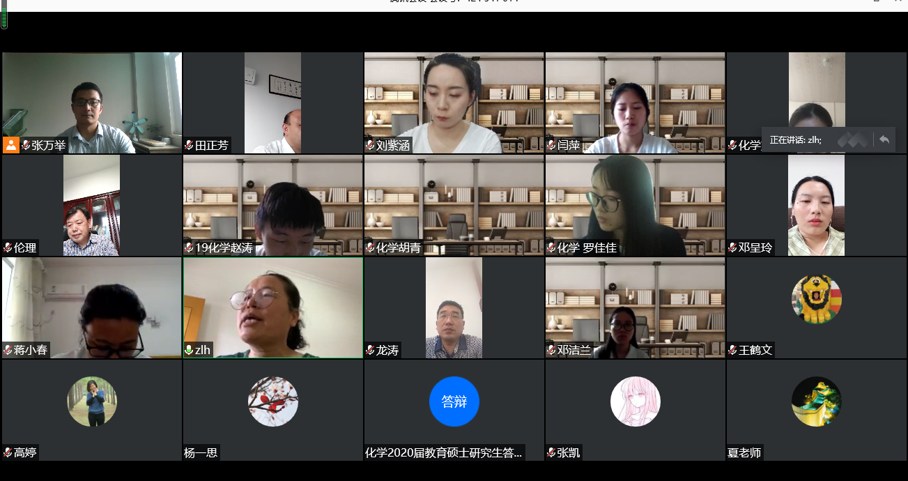 2020年5月29日上午,韦德官方网站首届学科教学(化学)教育硕士研究生论文答辩工作,以线上视频会议方式顺利进行。韦德官方网站高度重视本次答辩工作,做到疫情防控不放松、毕业时间不推迟,结合实际情况制定了详细的工作方案。本次答辩邀请了华中师范大学教授、韦德官方网站杰出校友王后雄教授担任答辩委员会主席;邓呈玲、邓洁兰、高婷、刘紫涵4名教育硕士参加答辩;研究生处夏庆利处长出席了答辩会并做指导。