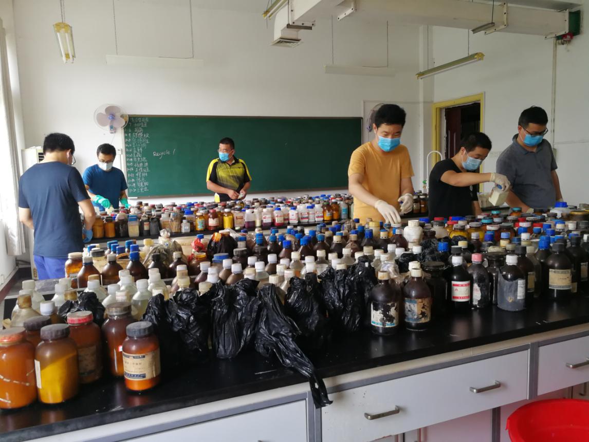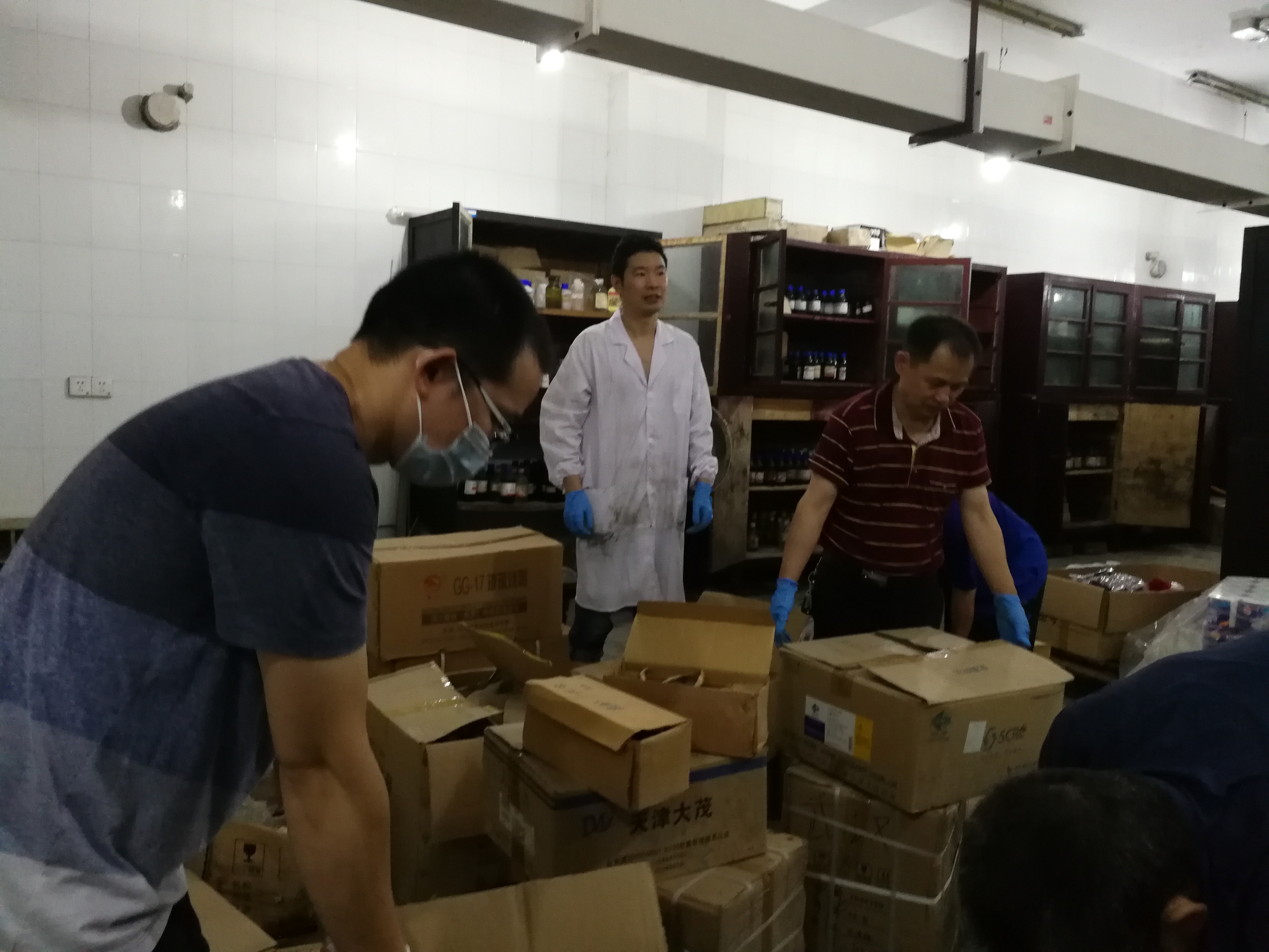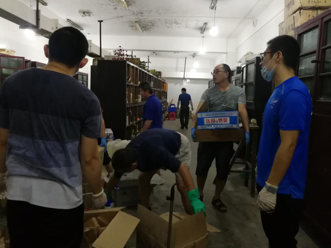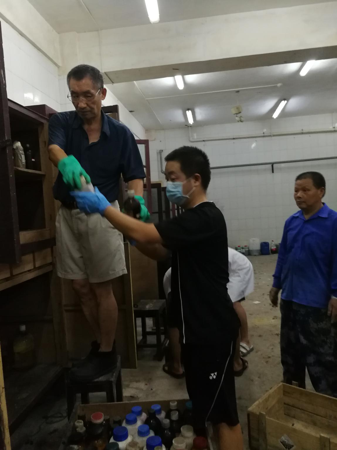 老师们在紧张地搬迁危化品