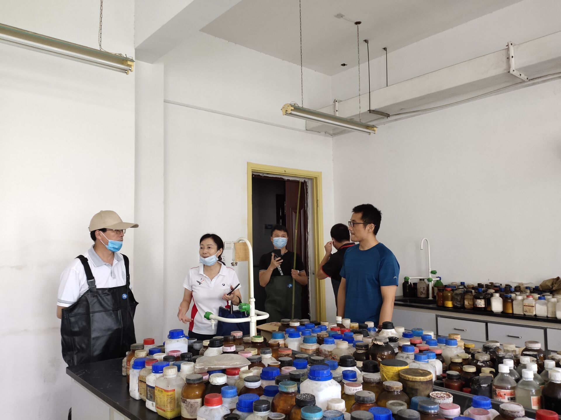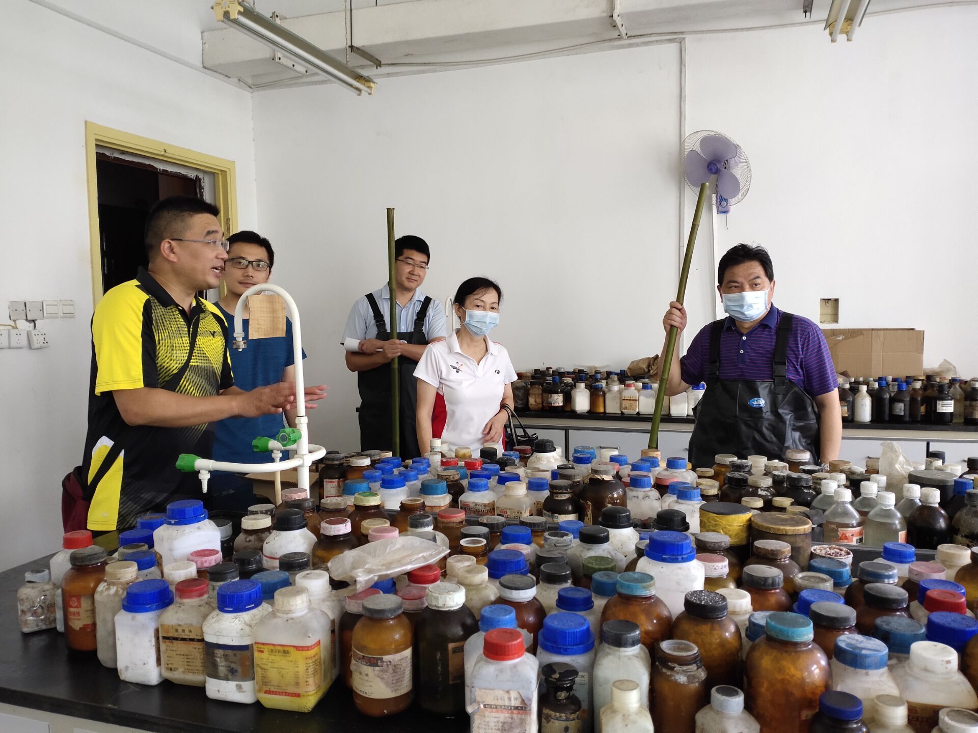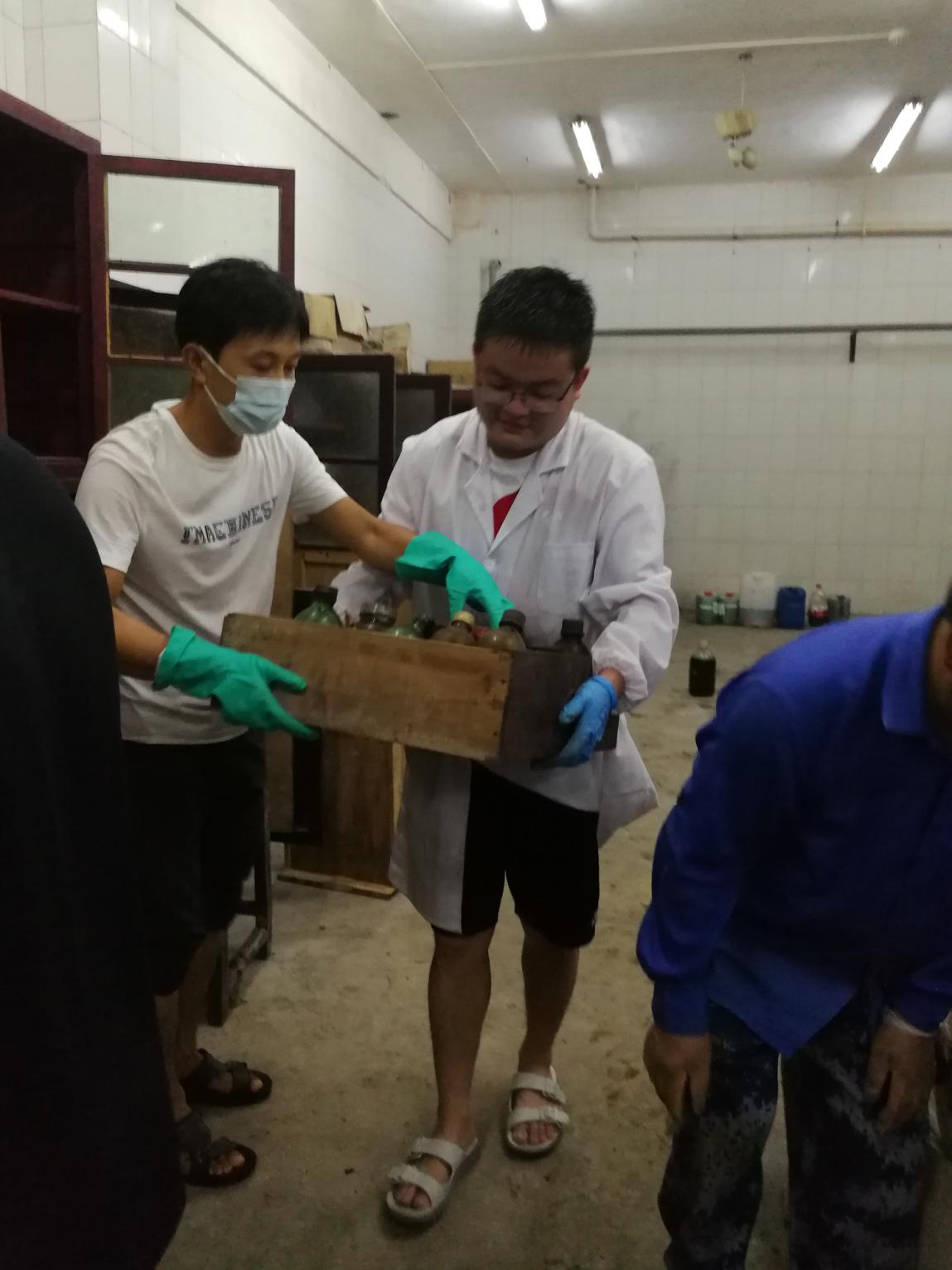 老师们在紧张地搬迁危化品