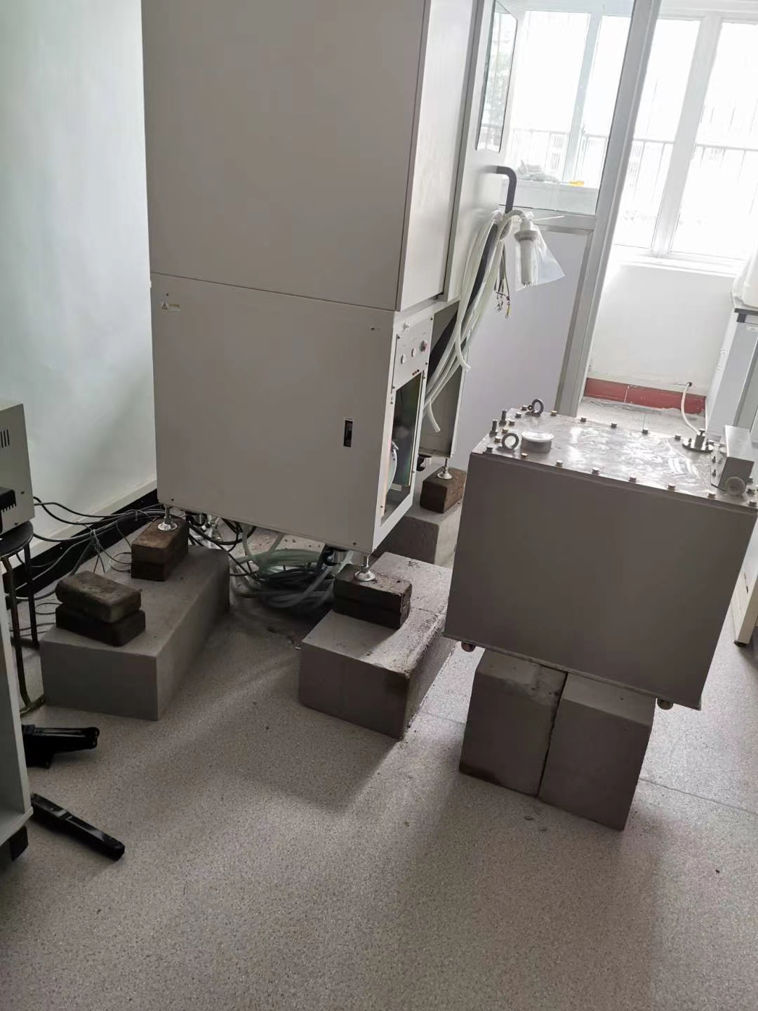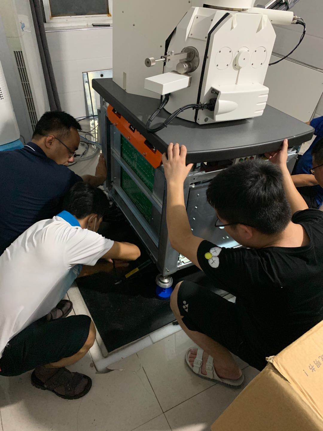 7月8日下午,暴雨如注,水位骤升,水面已漫过一楼所有的台阶,距离一楼平面仅仅差5cm,一楼高端精密仪器面临着水患危险,危情迫在眉睫,学院一方面组织莫小曼等十六老师克服困难参加抢险,运送沙袋筑堤,清理一楼实验室,并将物品全放到台面上,搬运砖块将仪器垫高,查地下室水情,补空调管洞口等,另一方面紧急求援,邀请相关公司派工程师指导抬高重大设备,两位工程师分别从郑州和苏州搭乘飞机赶到学院,经过两天两夜的精心指导,黄林勇等8名老师们动脑动手把近1吨重的电镜扫描仪、X射线衍射仪和X射线荧光光谱仪等三种精密仪器设备升高了50-100公分的安全高度,即使水位继续升高也能保住数百万的仪器设备免受损失。设备抬高了,大家紧锁的眉头舒展开了,脸上露出来久违的笑容!