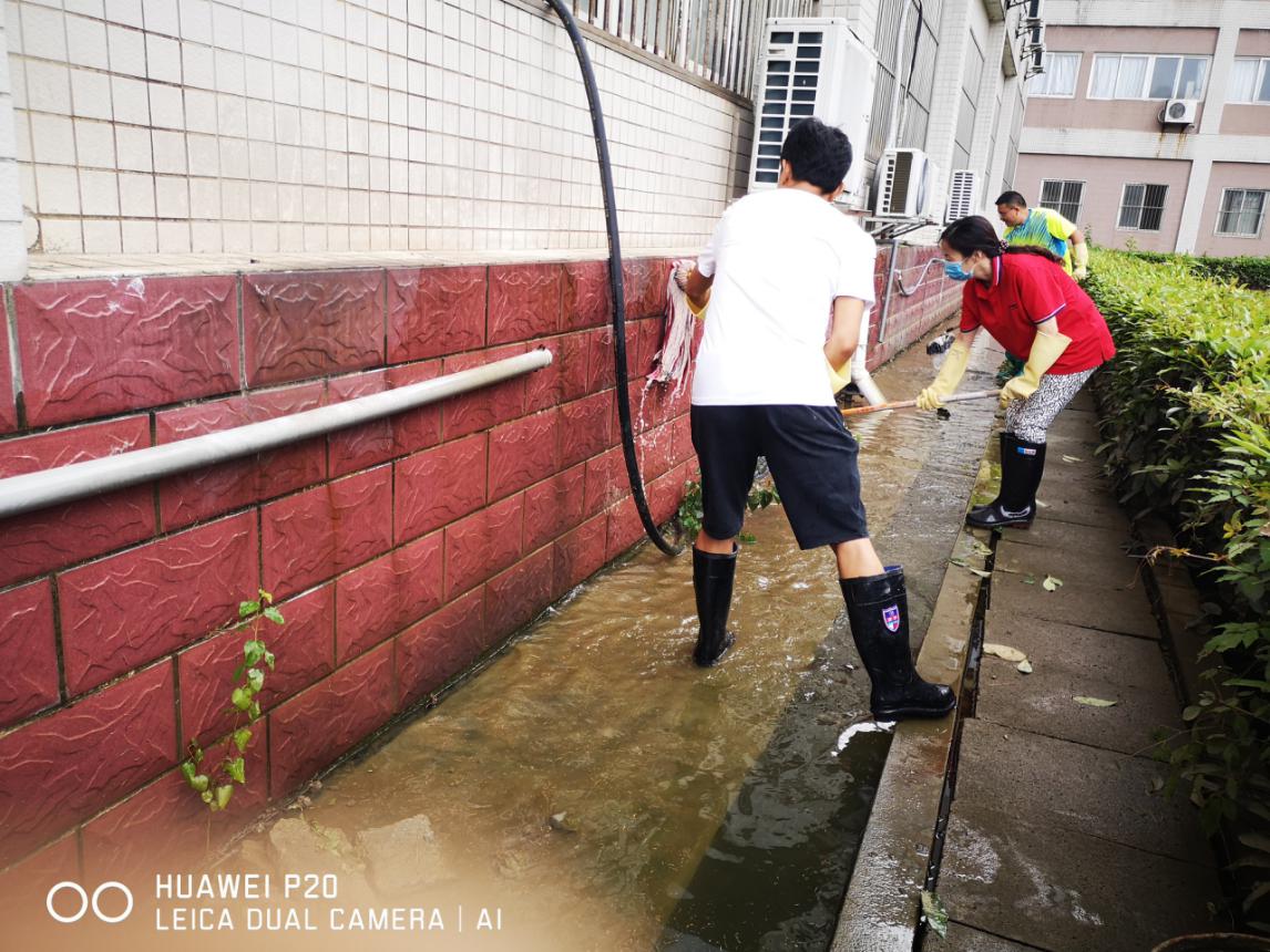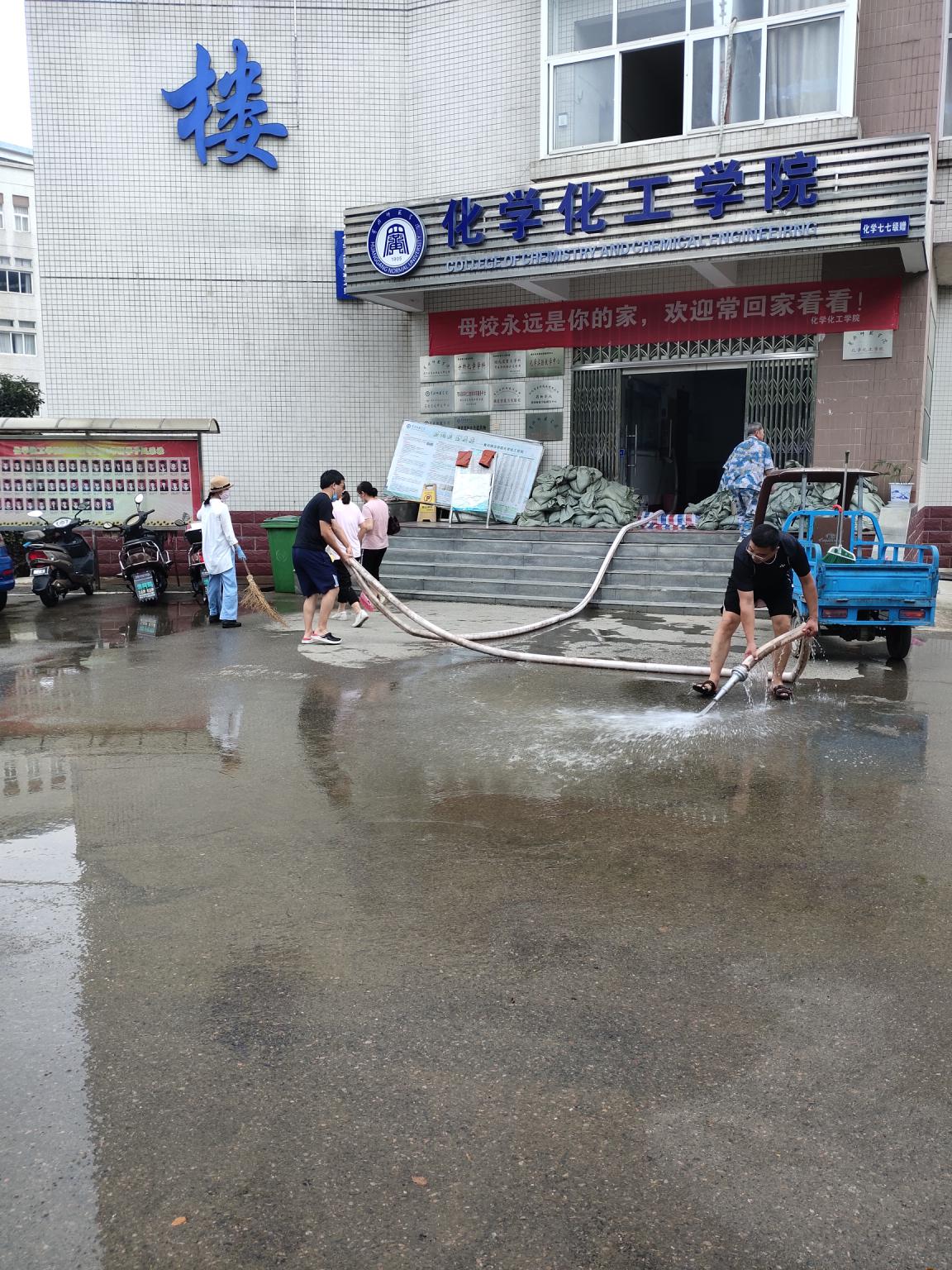 7月12日﹑13日,学校决策英明,部署有方,校园积水退去,学院接到通知立即对学院学生宿舍﹑化学楼内及周边区域环境卫生进行全面清扫和消毒。一场惊心动魄的抗洪战疫取得了伟大的胜利!