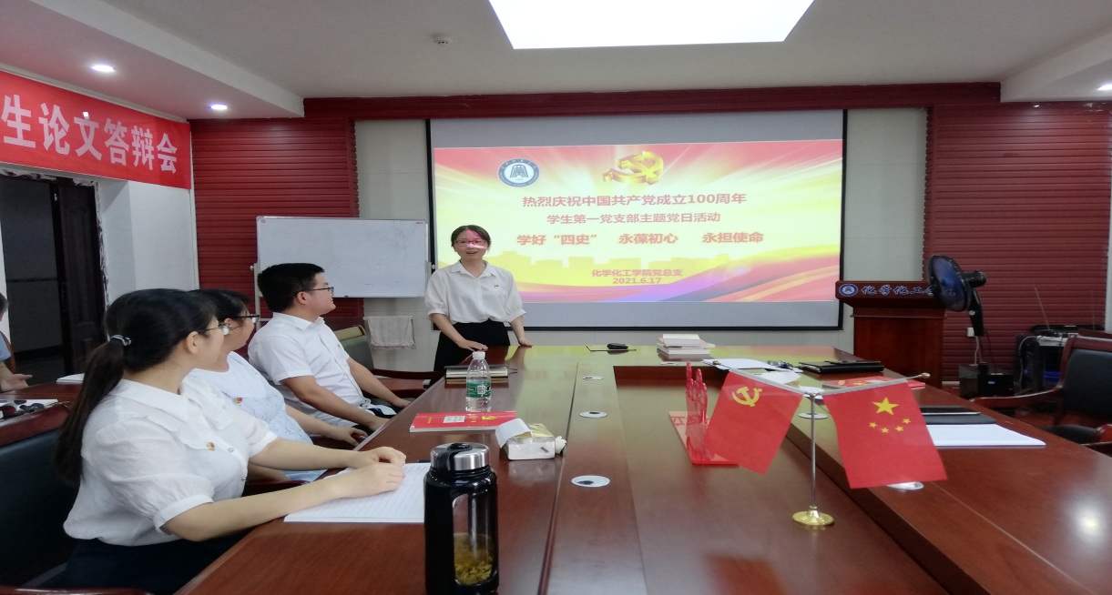 6月17日下午,韦德官方网站学生四个党支部分别在化学楼407会议室、连廊508党员活动室等地开展“学好“四史”,永葆初心、永担使命”支部主题党日活动,活动由党支部书记主持。