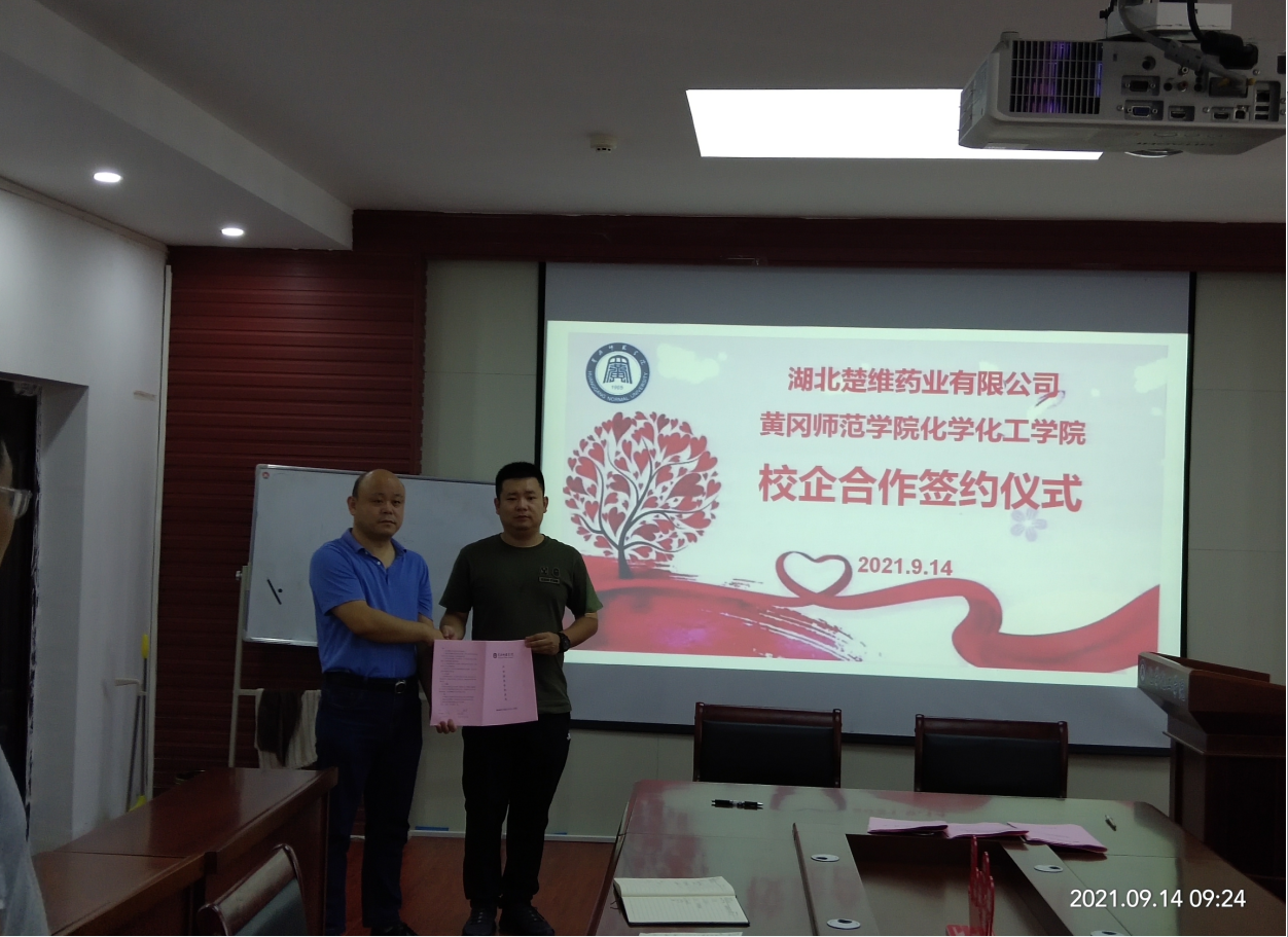 9月14日上午,湖北楚维药业有限公司总经理熊沣一行到韦德官方网站洽谈校企合作及共建博士工作站等事宜,并签订校企合作协议。
