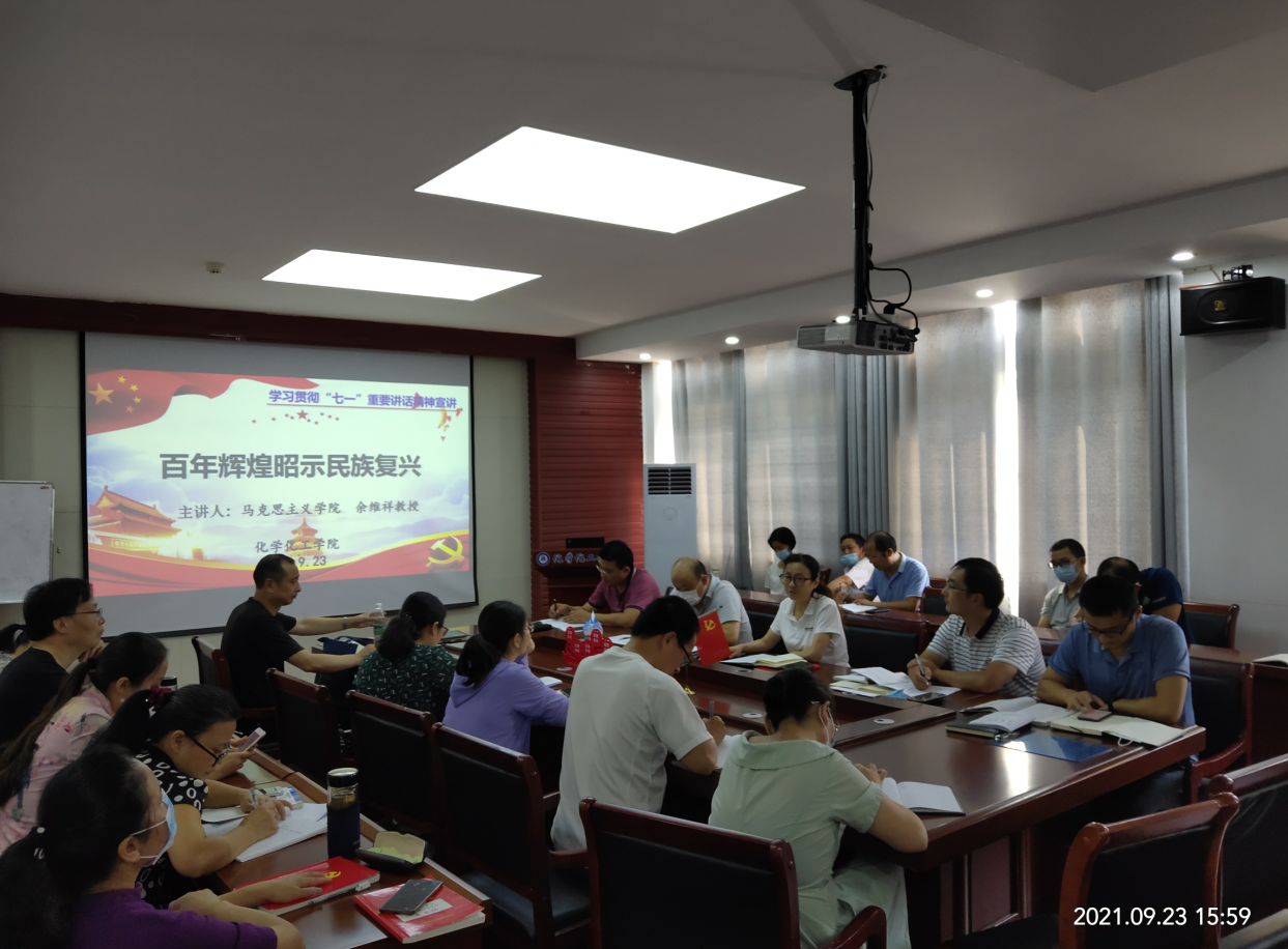 9月23日下午,韦德官方网站院在化学楼407举办学习贯彻“七一”重要讲话精神专题宣讲会。韦德官方网站全体教职工参加会议。
