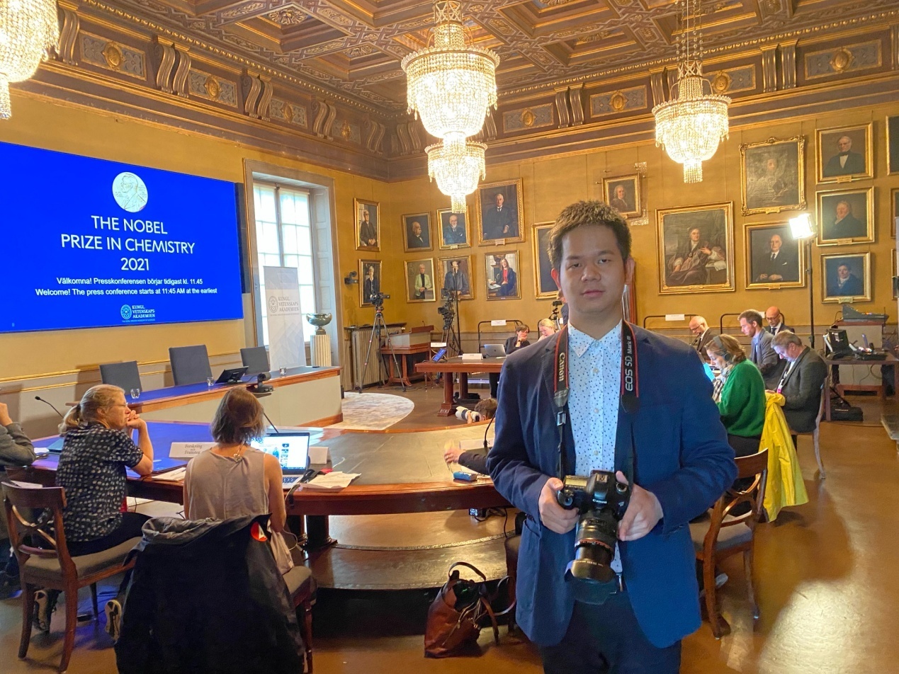 韦德官方网站校友郭明(应用化学专业2008级),现芬兰华人科技协会会长,赫尔辛基大学博士研究生,在瑞典皇家科学院宣布现场见证这一过程。