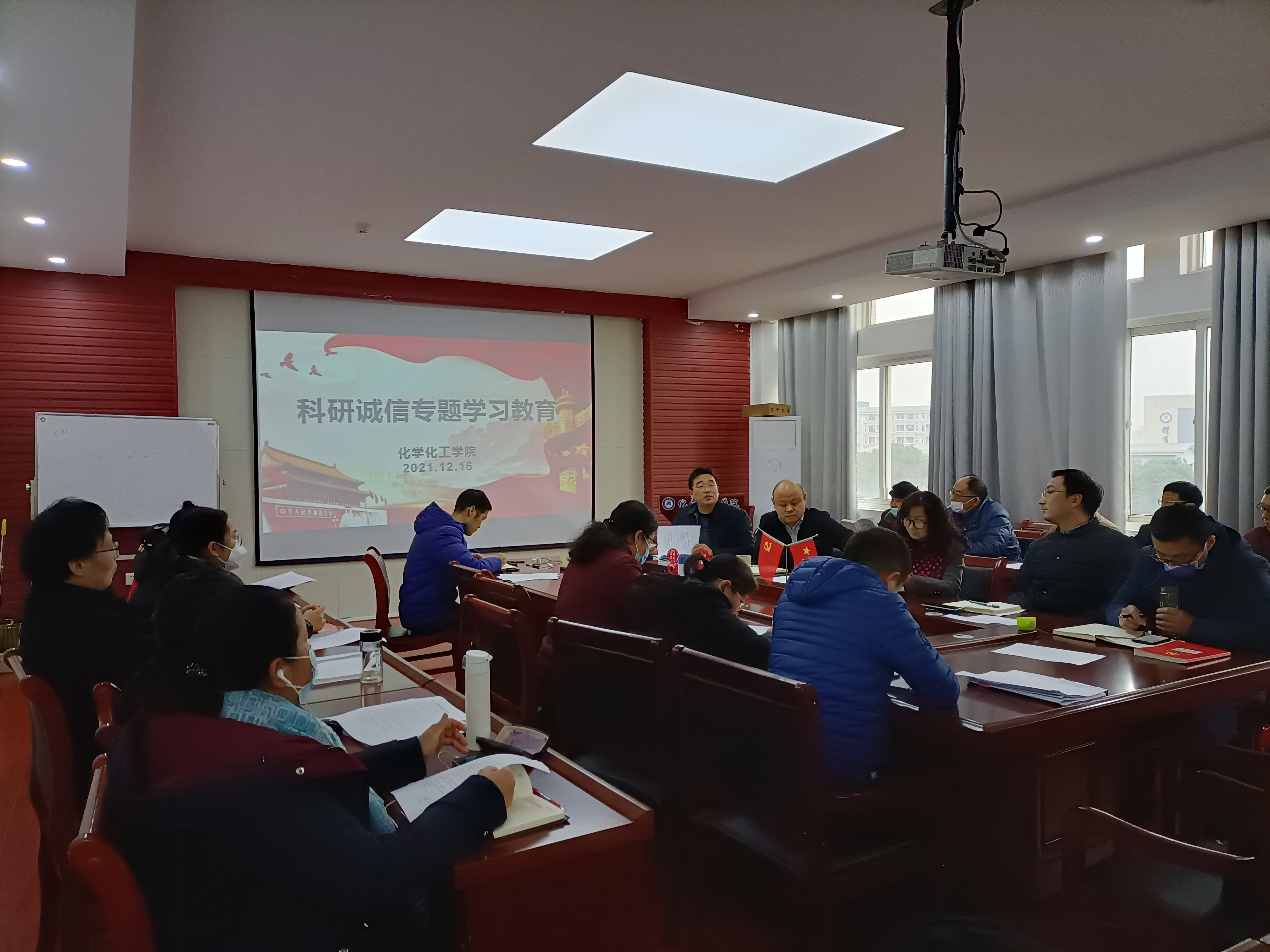 为培育和践行社会主义核心价值观,弘扬科学精神,倡导创新文化,营造诚实守信的良好科研环境,韦德官方网站于2021年12月16日下午在化学楼407会议室召开全体教职工大会,进行科研诚信专题学习教育,会议由分管科研的龙涛副院长主持。