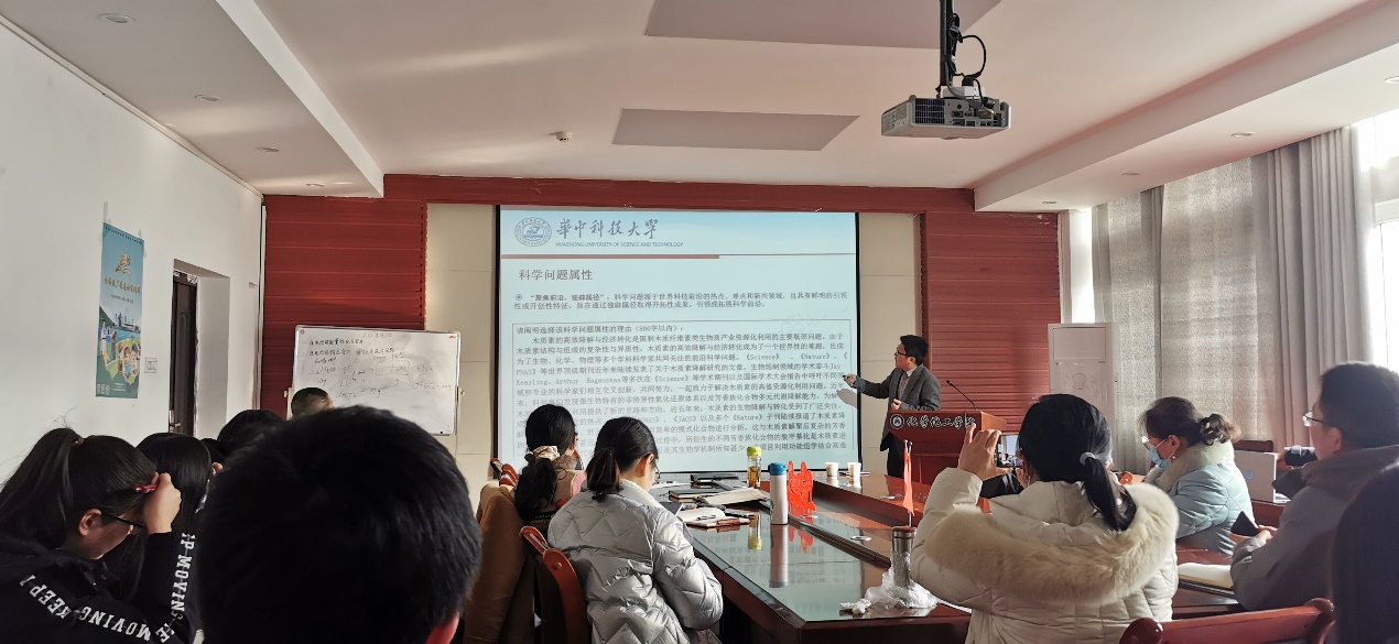 2022年1月11日,华中科技大学谢尚县教授应韦德官方网站邀请在化学楼407会议室做了题为“国家自然科学基金申请交流”的学术报告,报告会由韦德官方网站院长田正芳主持,韦德官方网站全体教师参加了报告会。