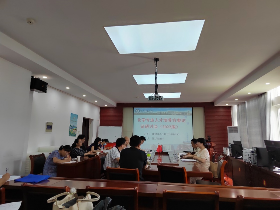 为贯彻落实国务院、教育部关于高等学校人才培养新任务新要求,适应教学改革发展需要,根据学校相关文件,在化学(师范)专业前期广泛调研、充分论证的基础上,学院于7月3日在化学楼407组织召开了2022版化学(师范)专业人才培养方案专家论证会。会议由院长田正芳教授主持,校教学督导朱立红教授、麻城二中副校长黄汝朝特级教师和黄冈中学宋倩文博士为本次论证会专家,学院党委副书记龙刚、副院长蒋小春、副院长龙涛、化学系主任陈砚美、各教研室主任和化学系师生代表参加了会议。