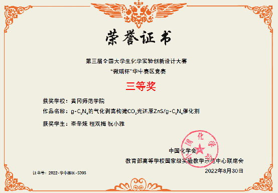 由教育部高等学校化学类专业教学指导委员会和高等学校国家级实验教学示范中心联席会主办的“微瑞杯”第三届全国大学生化学实验创新设计竞赛,分为东北、华北、华东、华中、西北、西南、华南共七个分赛区,首先进行分赛区比赛,然后再进行总决赛。其中华中赛区比赛于2022年7月20日—22日在湖北省武汉市举行,由华中科技大学化学与化工学院承办,也是唯一采用线下方式举办比赛的赛区。