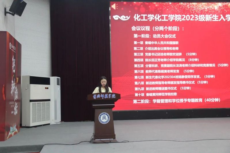 随后,2023年校“十佳师德标兵”、教师代表陈砚美作新生寄语;新生代表杨静雯同学进行发言。