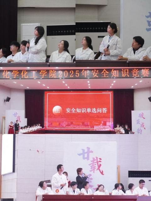 “安全知识抢答环节”则将赛事推向高潮,各队伍反应迅速、角逐激烈,比分交替上升,充分展现出强劲的应变能力与团队协作精神;“简答环节”聚焦复杂安全场景处理,选手们结合专业知识与实际经验,条理清晰地分析问题、提出解决方案,彰显出化学学子严谨的逻辑思维与过硬的实践能力,赢得评委一致好评。