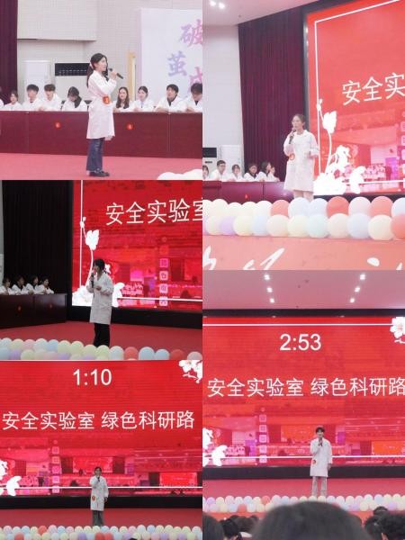 此次比赛共分为演讲、简答、抢答三类环节,决赛由2025级8个班级的代表队同台竞技。在演讲环节,参赛选手们结合专业所学、关联实验经历、紧扣化学安全主题,用鲜活的表达、真挚的情感了身边一则则真实具体的安全事例,阐明了安全是不可触碰的底线、不可逾越的红线、不可忽视的生命线。