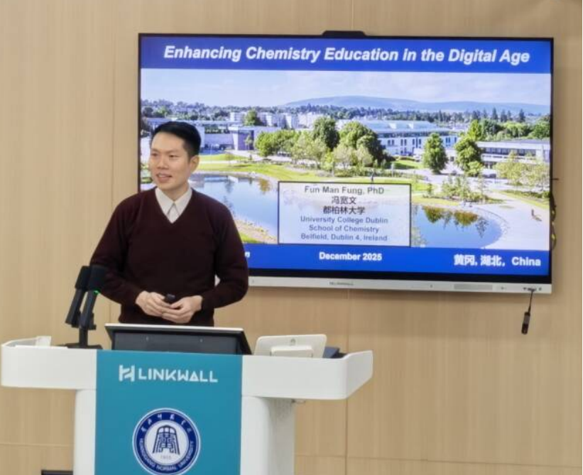 12月28日上午,爱尔兰都柏林大学冯宽文(Fun Man Fung)博士应邀来我校,做了一场题为“Enhancing Chemistry Education in the Digital Age”学术讲座。讲座由韦德官方网站副院长蒋小春主持,武汉轻工大学化学与环境工程学院院长闫俊涛教授、南京工业大学柔性电子(未来技术)学院副研究员吴健生博士作为特邀嘉宾出席。韦德官方网站全体专任教师、学科教学(化学)方向的教育硕士研究生及2022级、2023级化学专业学生共同参加了本次活动。