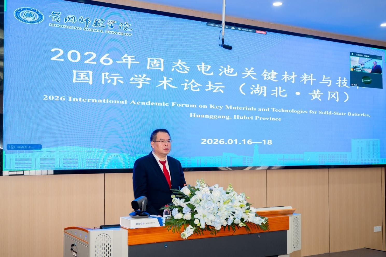 经湖北省人民政府外事办公室批复,1月16日至18日,由黄冈师范学院主办的“2026年固态电池关键材料与技术国际学术论坛”在我校成功召开。校党委副书记、校长漆昌柱,黄冈市科协党组书记、主席彭学海出席开幕式并致辞,会议由韦德官方网站院长田正芳主持。
