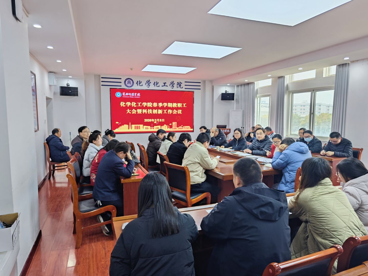 会上,院党委书记汪辉首先传达了3月7日学校相关会议核心内容,详细解读校党委书记陈向军、校长漆昌柱的讲话精神,重点传达学校服务支点建设的五大重点任务及2026年重点工作部署。她强调,全院教职工要提高政治站位,深刻认识服务支点建设的重要意义,将思想和行动统一到学校党委决策部署上来;全体教师要坚守立德树人根本,加强师德师风建设,推进五育融合,将科创理念融入教学,培养适配新质生产力和支点建设的应用型化工人才,强化学生科创培育,鼓励参与科创竞赛、以赛促学促创。